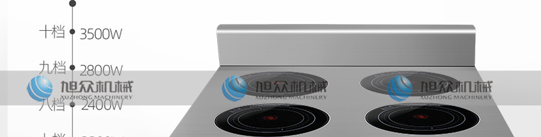 四頭柜式電磁爐,10檔調(diào)節(jié),滿足各種烹飪。3500W火力十足,輕松選擇合適火力。同時(shí)工作互不干擾單獨(dú)磁爐控制面板,設(shè)置不同大小檔數(shù),同時(shí)工作,互不干擾。