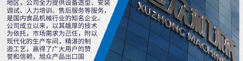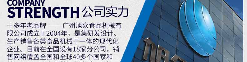 廣州旭眾食品機(jī)械有限公司是一家集科研開(kāi)發(fā),生產(chǎn)設(shè)計(jì),營(yíng)銷(xiāo)服務(wù)為一體的現(xiàn)代化生產(chǎn)企業(yè)?,F(xiàn)代化生產(chǎn)車(chē)間,精湛制造技術(shù),所產(chǎn)機(jī)械歷經(jīng)市場(chǎng)重重考驗(yàn),不斷贏得海內(nèi)外客戶的贊譽(yù)。