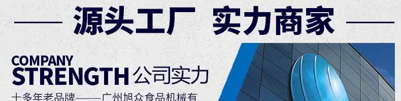 廣州旭眾食品機(jī)械有限公司是一家集科研開發(fā),生產(chǎn)設(shè)計(jì),營銷服務(wù)為一體的現(xiàn)代化生產(chǎn)企業(yè)?,F(xiàn)代化生產(chǎn)車間,精湛制造技術(shù),所產(chǎn)機(jī)械歷經(jīng)市場重重考驗(yàn),不斷贏得海內(nèi)外客戶的贊譽(yù)。