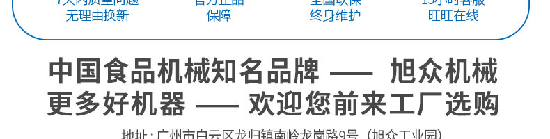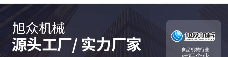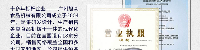 廣州旭眾食品機械有限公司是一家集科研開發(fā),生產(chǎn)設計,營銷服務為一體的現(xiàn)代化生產(chǎn)企業(yè)。現(xiàn)代化生產(chǎn)車間,精湛制造技術,所產(chǎn)機械歷經(jīng)市場重重考驗,不斷贏得海內(nèi)外客戶的贊譽。