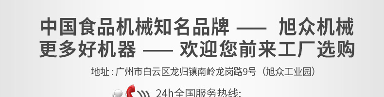 廣州旭眾食品機(jī)械有限公司是一家集科研開(kāi)發(fā),生產(chǎn)設(shè)計(jì),營(yíng)銷服務(wù)為一體的現(xiàn)代化生產(chǎn)企業(yè)?,F(xiàn)代化生產(chǎn)車間,精湛制造技術(shù),所產(chǎn)機(jī)械歷經(jīng)市場(chǎng)重重考驗(yàn),不斷贏得海內(nèi)外客戶的贊譽(yù)。